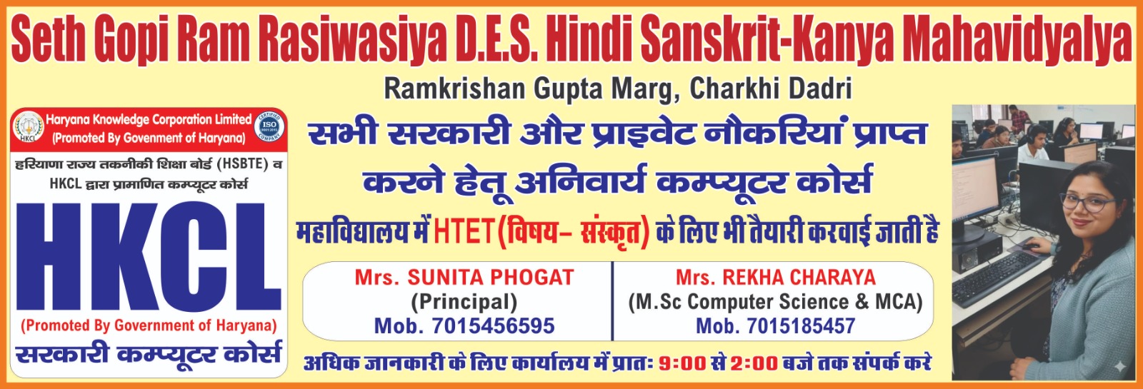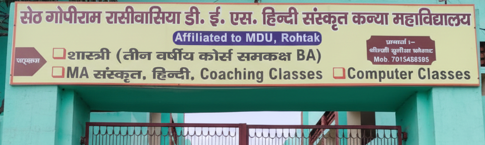 Welcome to Seth Gopiram Rasiwasiya D.E.S. Hindi Sanskrit Kanya Mahavidyalaya, an institution dedicated to the education and empowerment of girls. Our college operates under the guiding principles of "Beti Bachao, Beti Padhao" (Save the Daughter, Educate the Daughter).